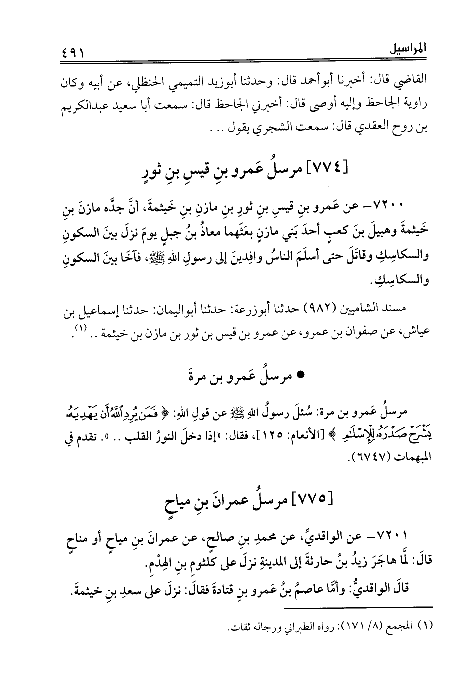 [774] مرسلُ عَمرو بنِ قيسِ بنِ ثورٍ