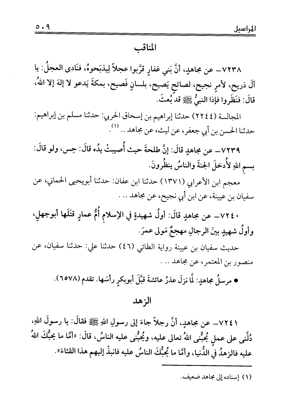 المجالسة (2244) حدثنا إبراهيم بن إسحاق الحربي: حدثنا مسلم بن إبراهيم: حدثنا الحسن بن أبي جعفر، عن ليث، عن مجاهد .. (¬1).