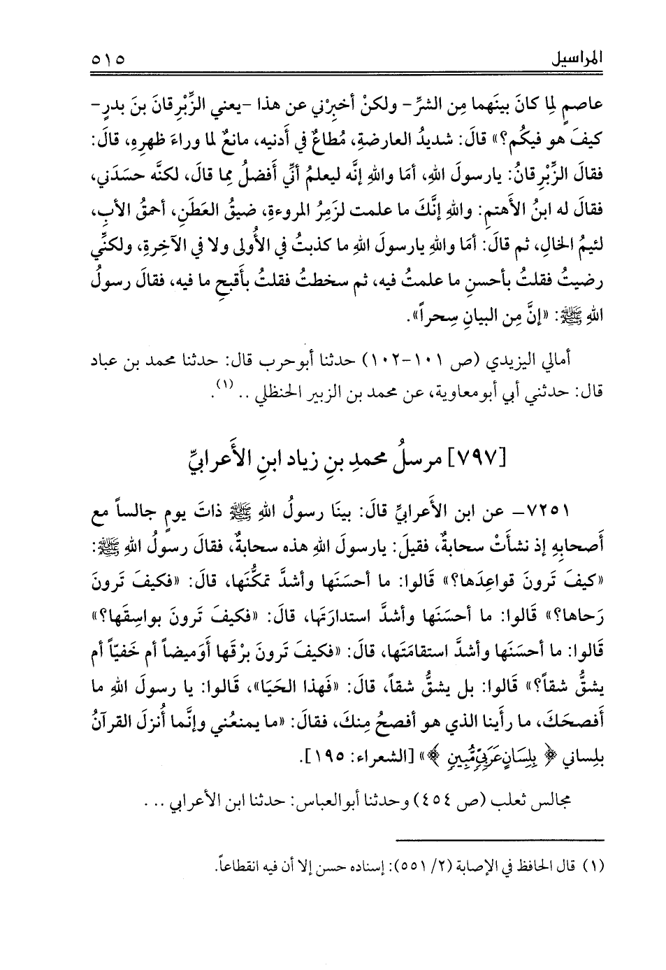 [797] مرسلُ محمدِ بنِ زياد ابنِ الأَعرابيِّ