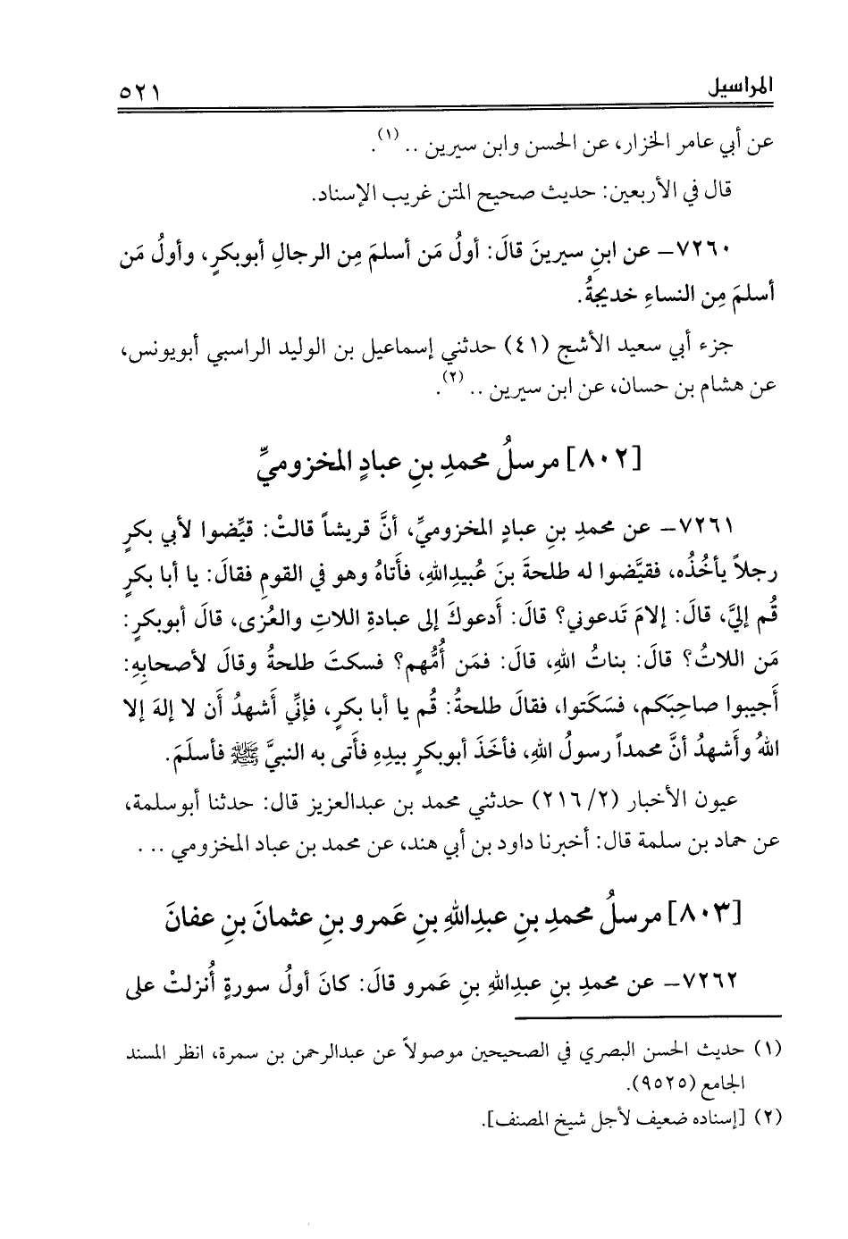 [802] مرسلُ محمدِ بنِ عبادٍ المخزوميِّ
