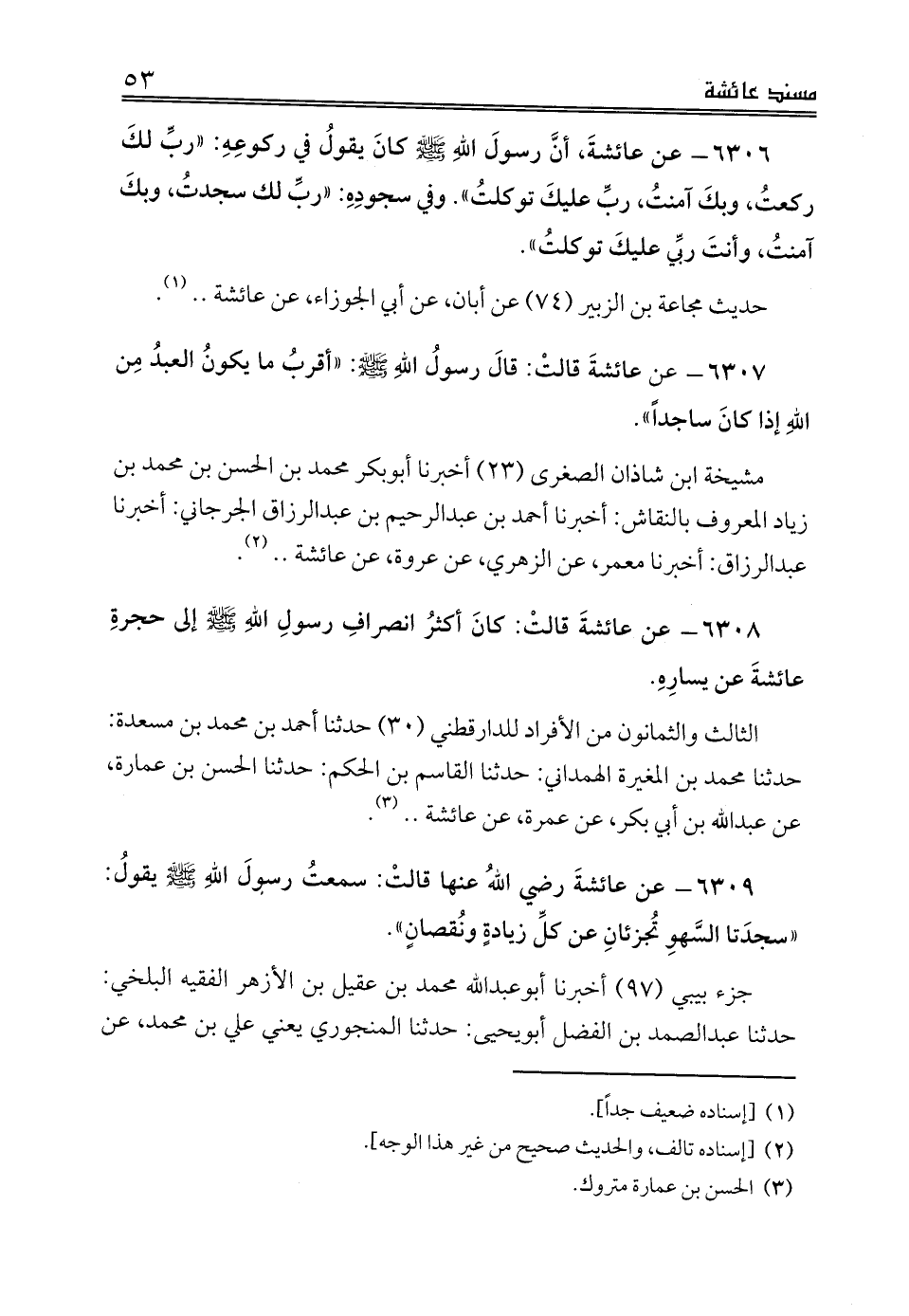 الثالث والثمانون من الأفراد للدارقطني (30) حدثنا أحمد بن محمد بن مسعدة: حدثنا محمد بن المغيرة الهمداني: حدثنا القاسم بن الحكم: حدثنا الحسن بن عمارة، عن عبدالله بن أبي بكر، عن عمرة، عن عائشة .. (¬2).
