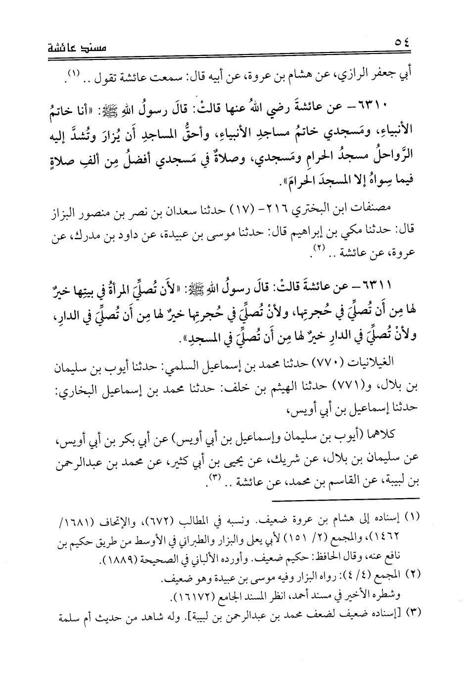 قال: حدثنا مكي بن إبراهيم قال: حدثنا موسى بن عبيدة، عن داود بن مدرك، عن عروة، عن عائشة .. (¬1).