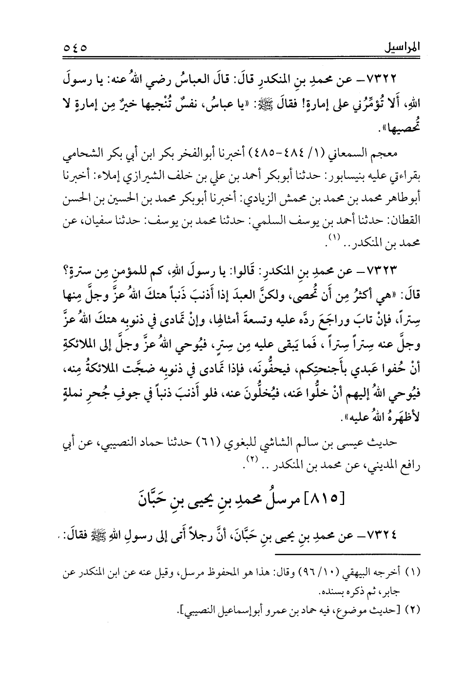 [815] مرسلُ محمدِ بنِ يحيى بنِ حَبَّانَ