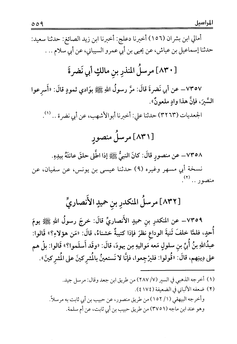 [832] مرسلُ المنكدرِ بنِ حميدٍ الأَنصاريِّ