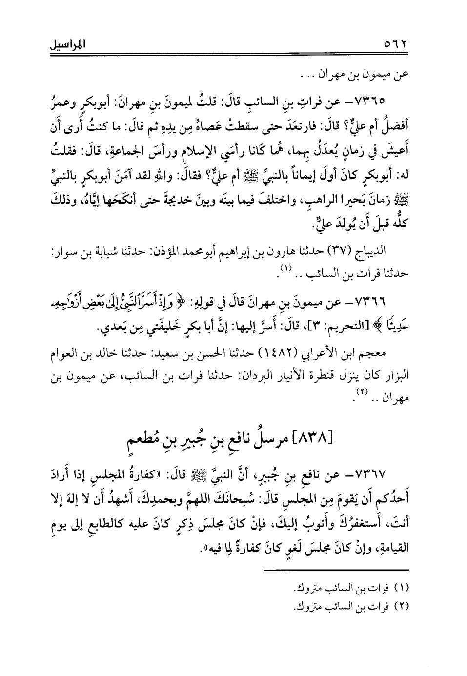 [838] مرسلُ نافعِ بنِ جُبيرِ بنِ مُطعمٍ