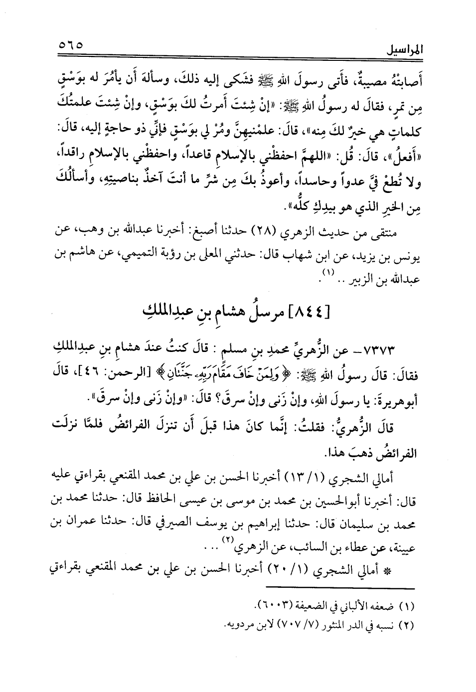 [844] مرسلُ هشامِ بنِ عبدِالملكِ