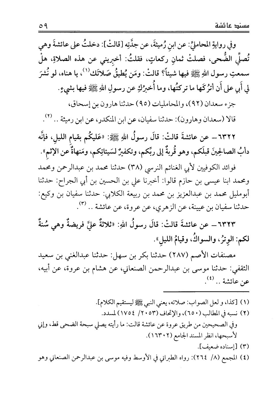 مصنفات الأصم (287) حدثنا بكر بن سهل: حدثنا عبدالغني بن سعيد الثقفي: حدثنا موسى بن عبدالرحمن الصنعاني، عن هشام بن عروة، عن أبيه، عن عائشة .. (¬3).