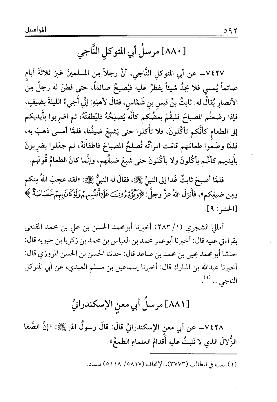 [880] مرسلُ أبي المتوكلِ النَّاجي
