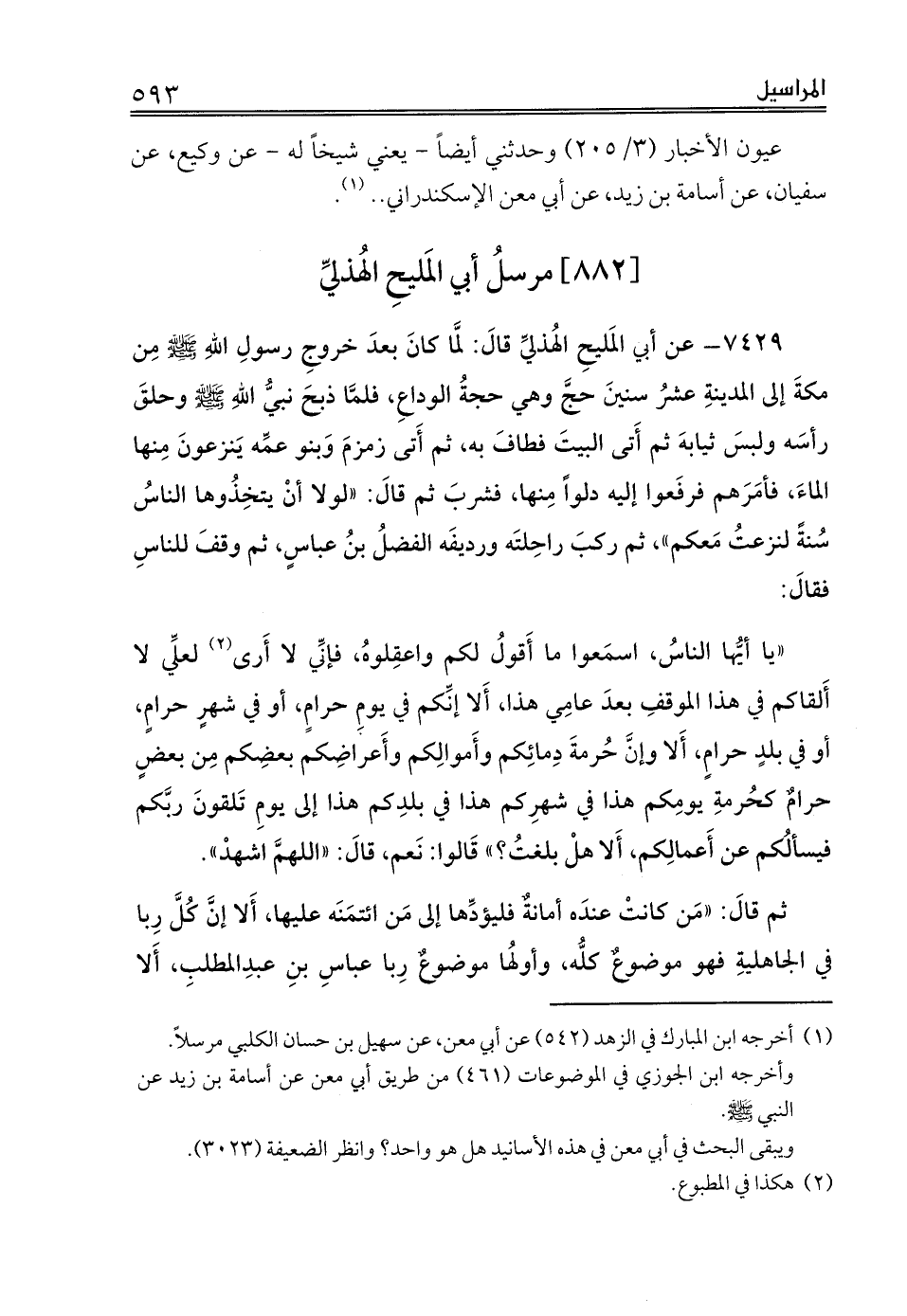 [882] مرسلُ أبي المَليحِ الهُذليِّ