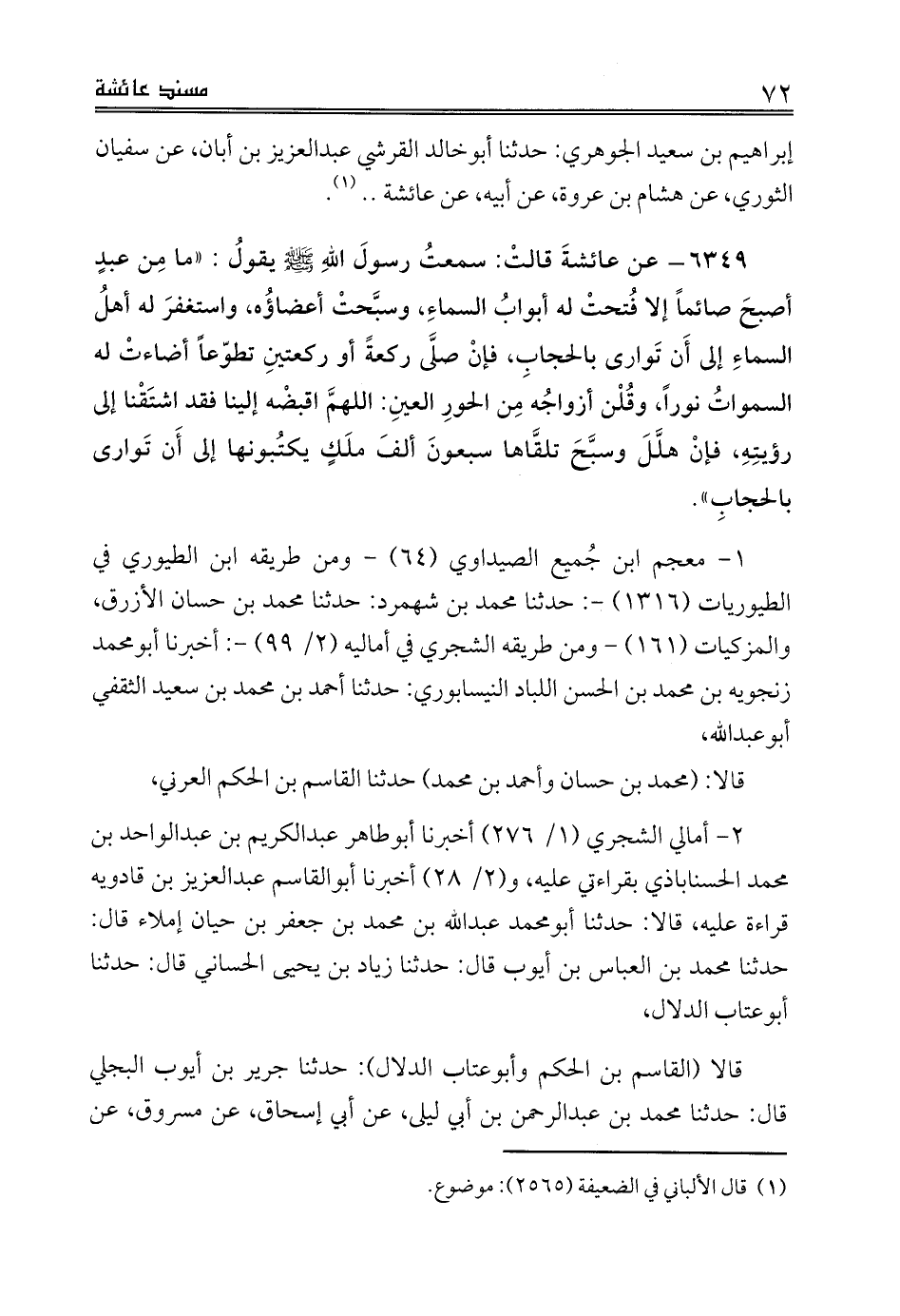 إبراهيم بن سعيد الجوهري: حدثنا أبوخالد القرشي عبدالعزيز بن أبان، عن سفيان الثوري، عن هشام بن عروة، عن أبيه، عن عائشة .. (¬1).