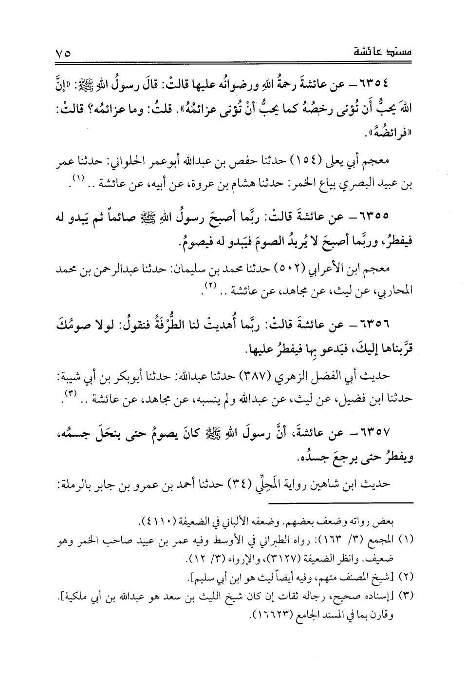 حديث أبي الفضل الزهري (387) حدثنا عبدالله: حدثنا أبوبكر بن أبي شيبة: حدثنا ابن فضيل، عن ليث، عن عبدالله ولم ينسبه، عن مجاهد، عن عائشة .. (¬3).