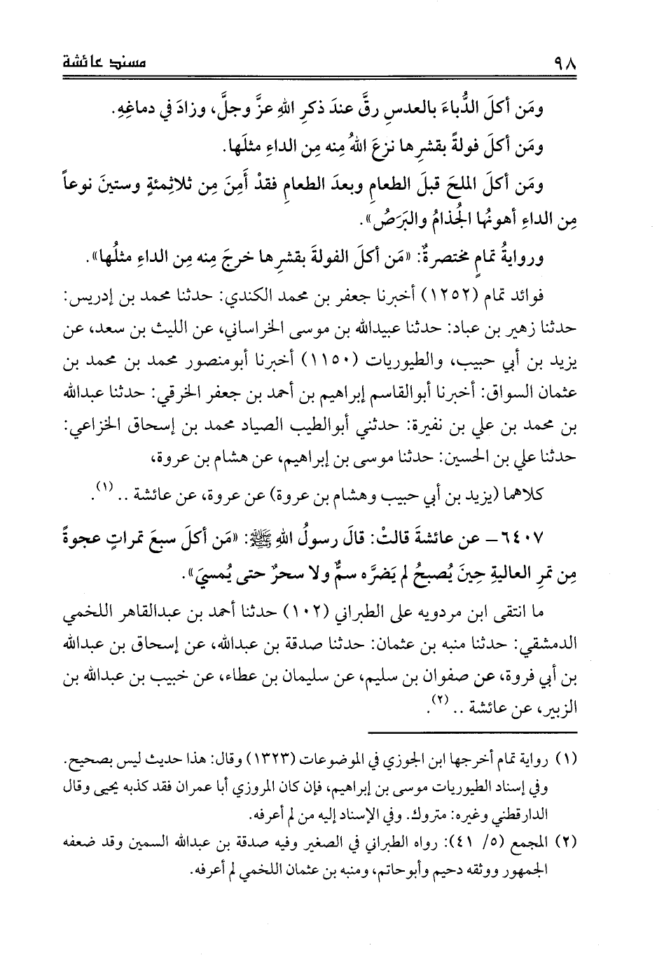 ما انتقى ابن مردويه على الطبراني (102) حدثنا أحمد بن عبدالقاهر اللخمي الدمشقي: حدثنا منبه بن عثمان: حدثنا صدقة بن عبدالله، عن إسحاق بن عبدالله بن أبي فروة، عن صفوان بن سليم، عن سليمان بن عطاء، عن خبيب بن عبدالله بن الزبير، عن عائشة .. (¬2).