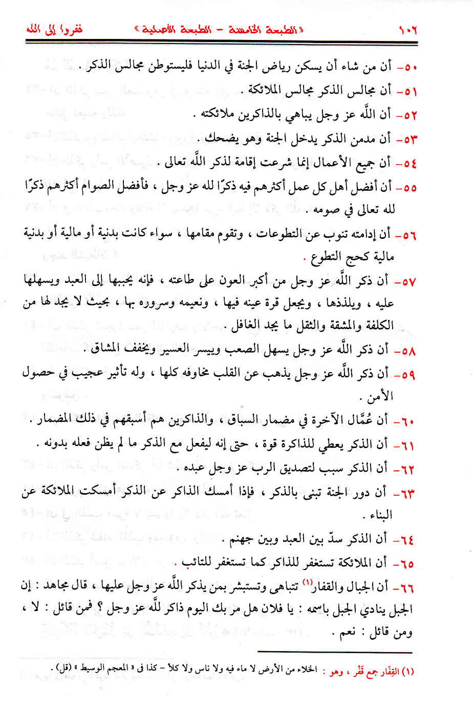 66 - أن الجبال والقفار تتباهى وتستبشر بمن يذكر اللَّه عز وجل عليها، قال مجاهد: إن الجبل ينادي الجبل باسمه: يا فلان هل مر بك اليوم ذاكر للَّه عز وجل؟ فمن قائل: لا، ومن قائل: نعم.