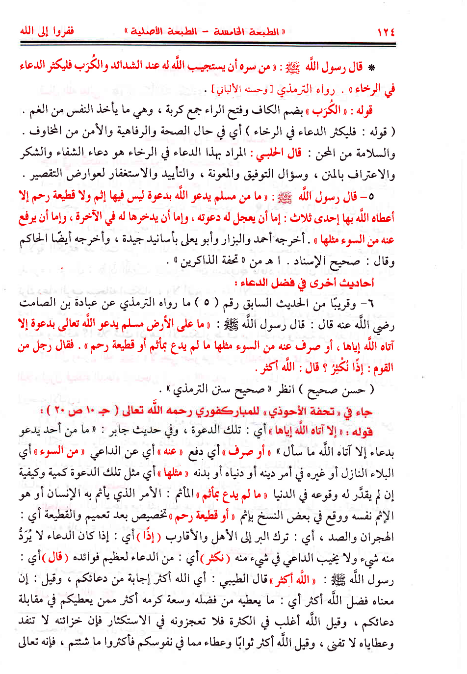 جاء في «تحفة الأحوذي» للمباركفوري رحمه اللَّه تعالى (جـ 10 ص 20):