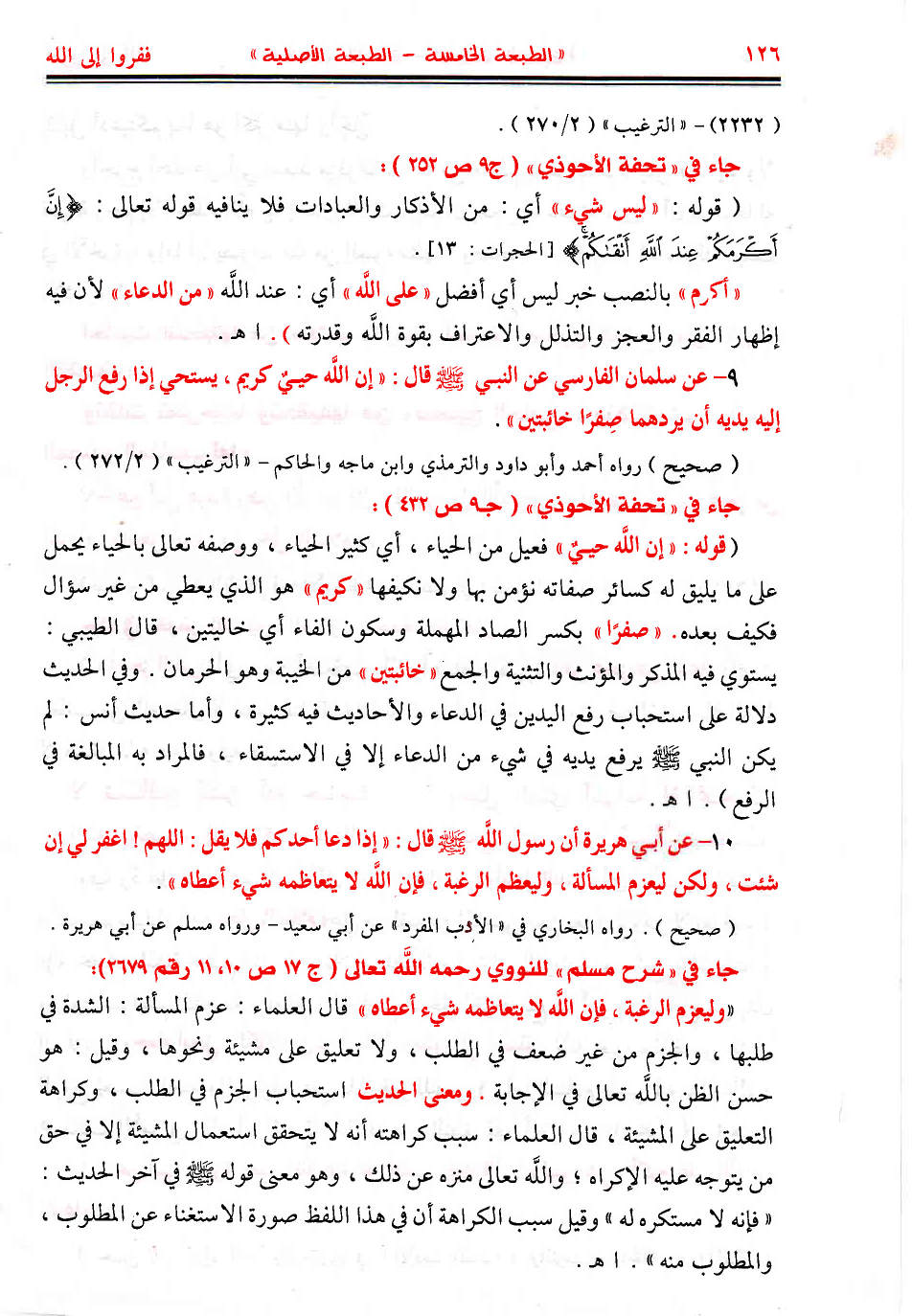 10 - عن أبي هريرة أن رسول اللَّه - صَلَّى اللهُ عَلَيْهِ وَسَلَّمَ - قال: «إذا دعا أحدكم فلا يقل: اللهم! اغفر لي إن شئت، ولكن ليعزم المسألة، وليعظم الرغبة، فإن اللَّه لا يتعاظمه شيء أعطاه».