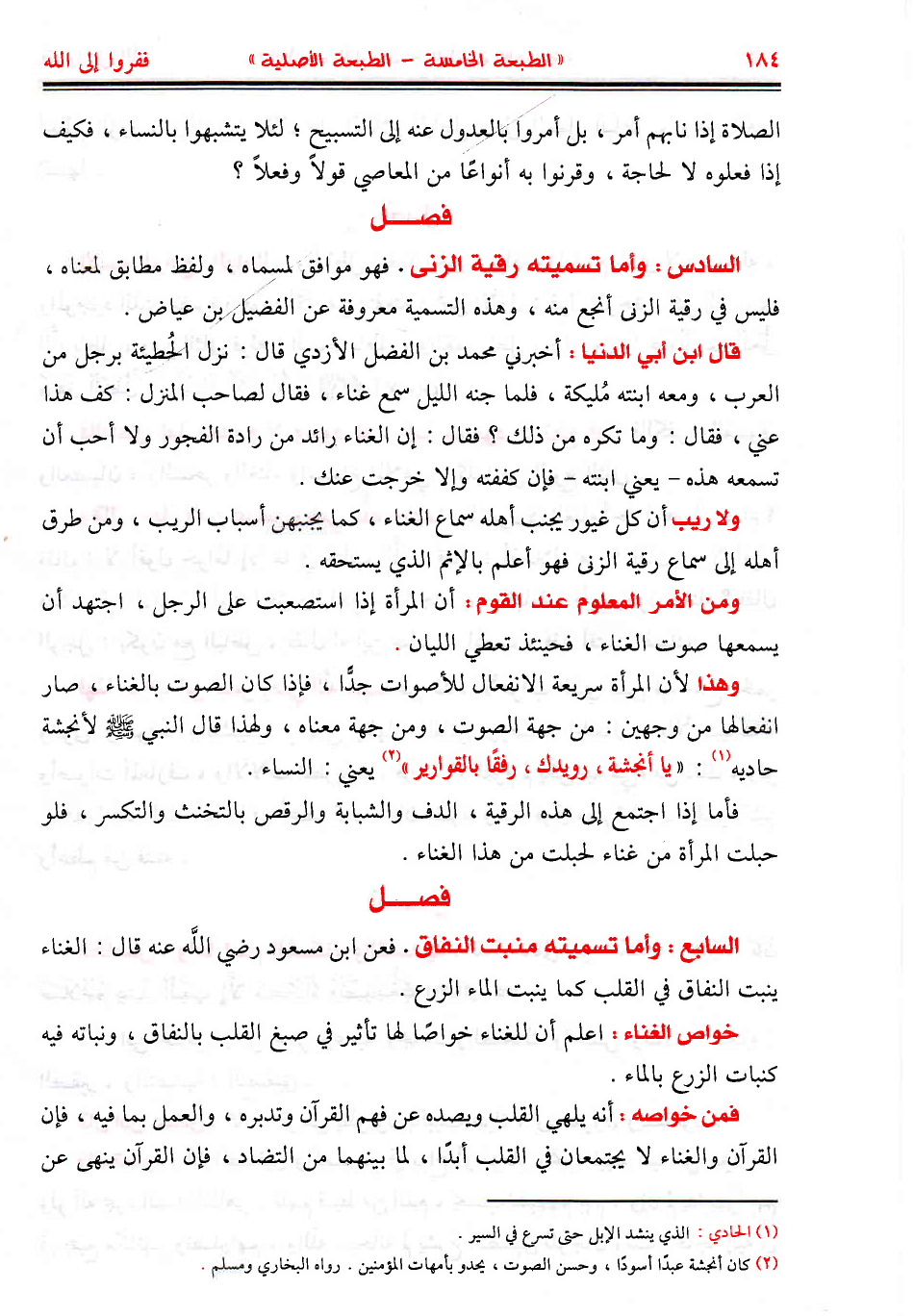خواص الغناء: اعلم أن للغناء خواصًا لها تأثير في صبغ القلب بالنفاق، ونباته فيه كنبات الزرع بالماء.