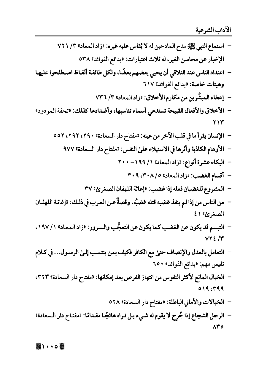 - الإخبار عن محاسن الغير، له ثلاث اعتبارات: «بدائع الفوائد» ٥٣٨
