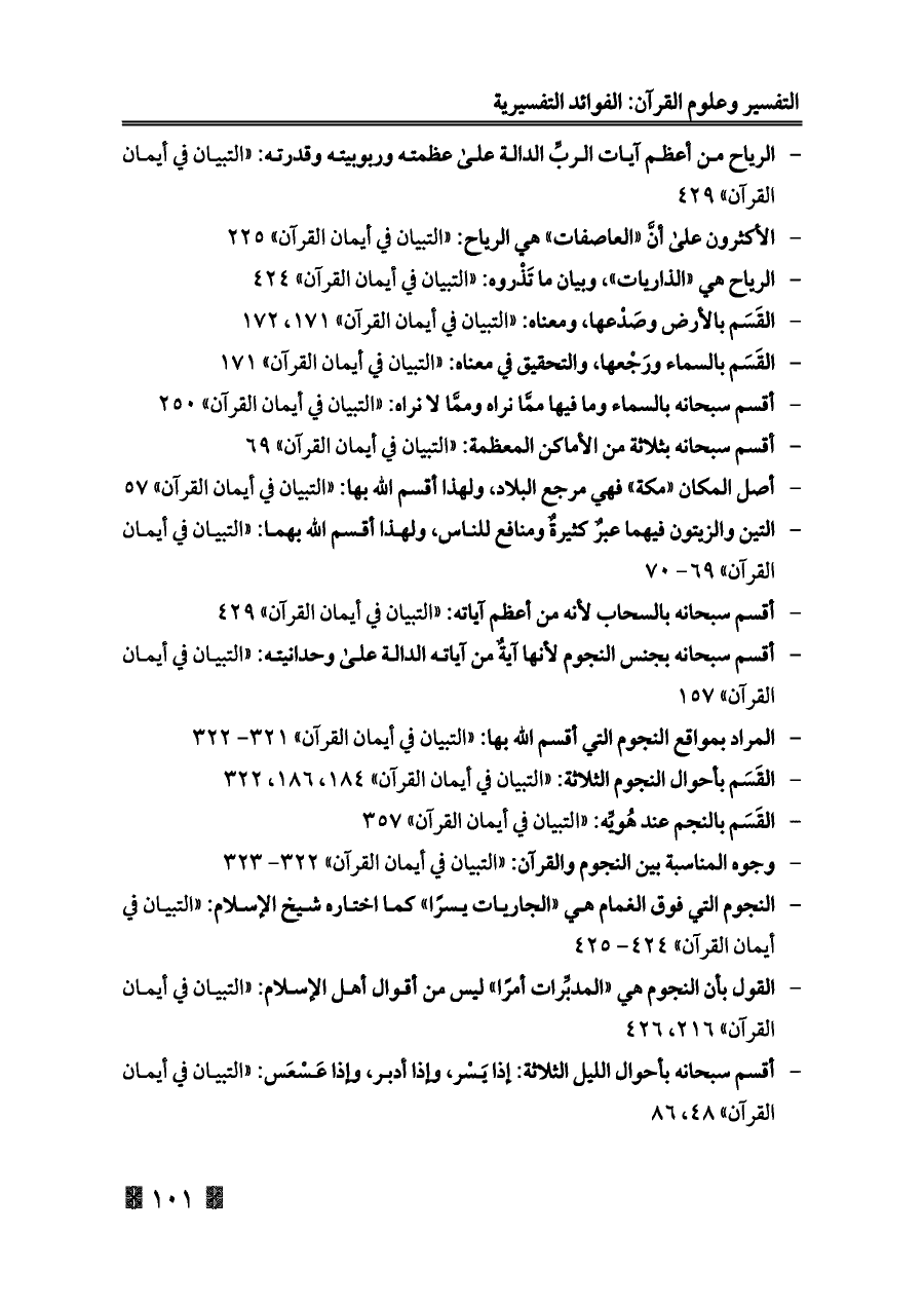 - وجوه المناسبة بين النجوم والقرآن: «التبيان في أيمان القرآن» ٣٢٢ - ٣٢٣