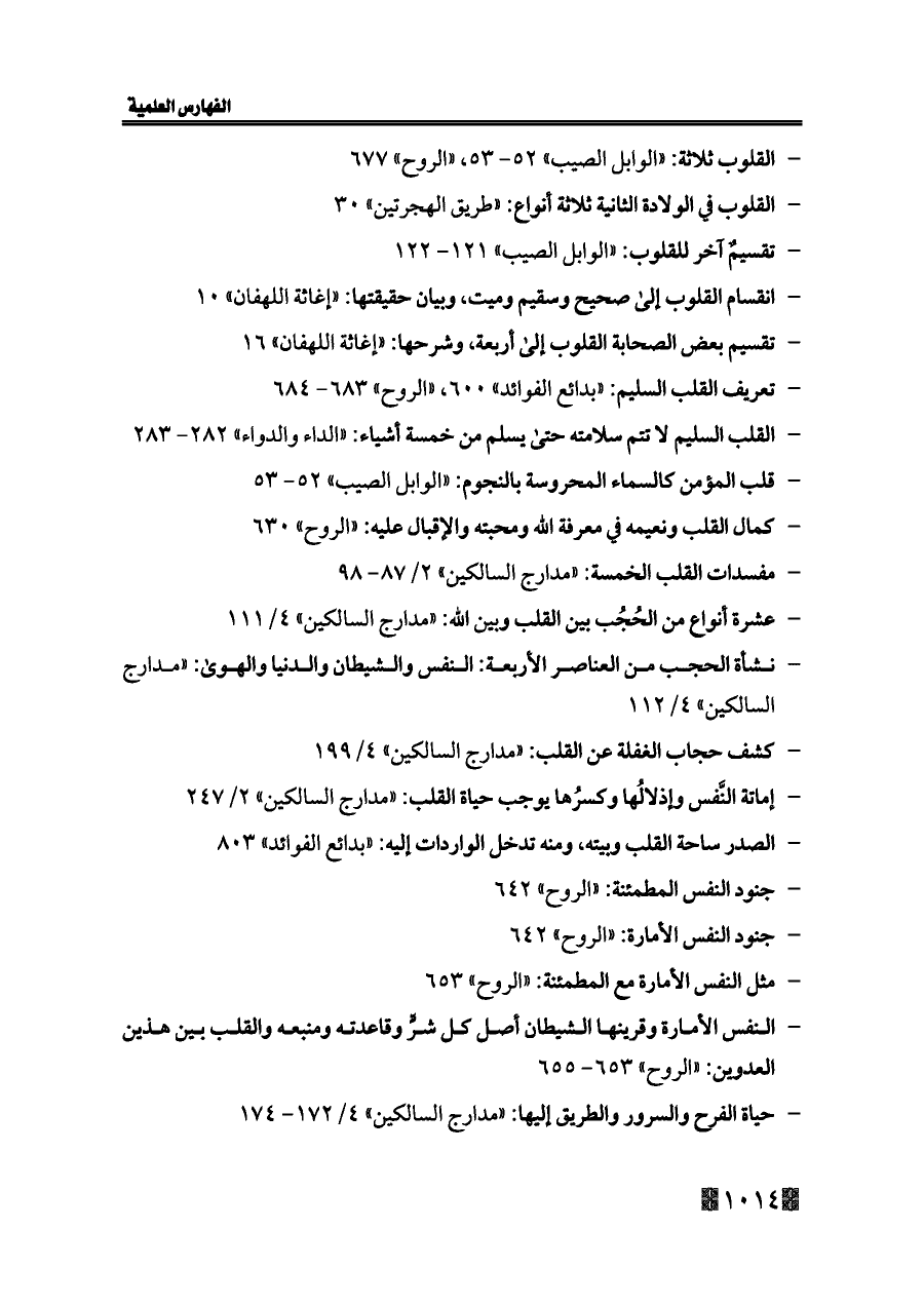 - تعريف القلب السليم: «بدائع الفوائد» ٦٠٠، «الروح» ٦٨٣ - ٦٨٤