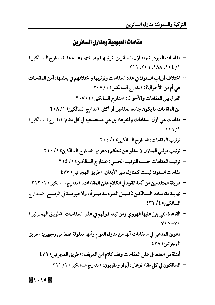 - ترتيب المقامات: «مدارج السالكين» ١/ ٢٠٤