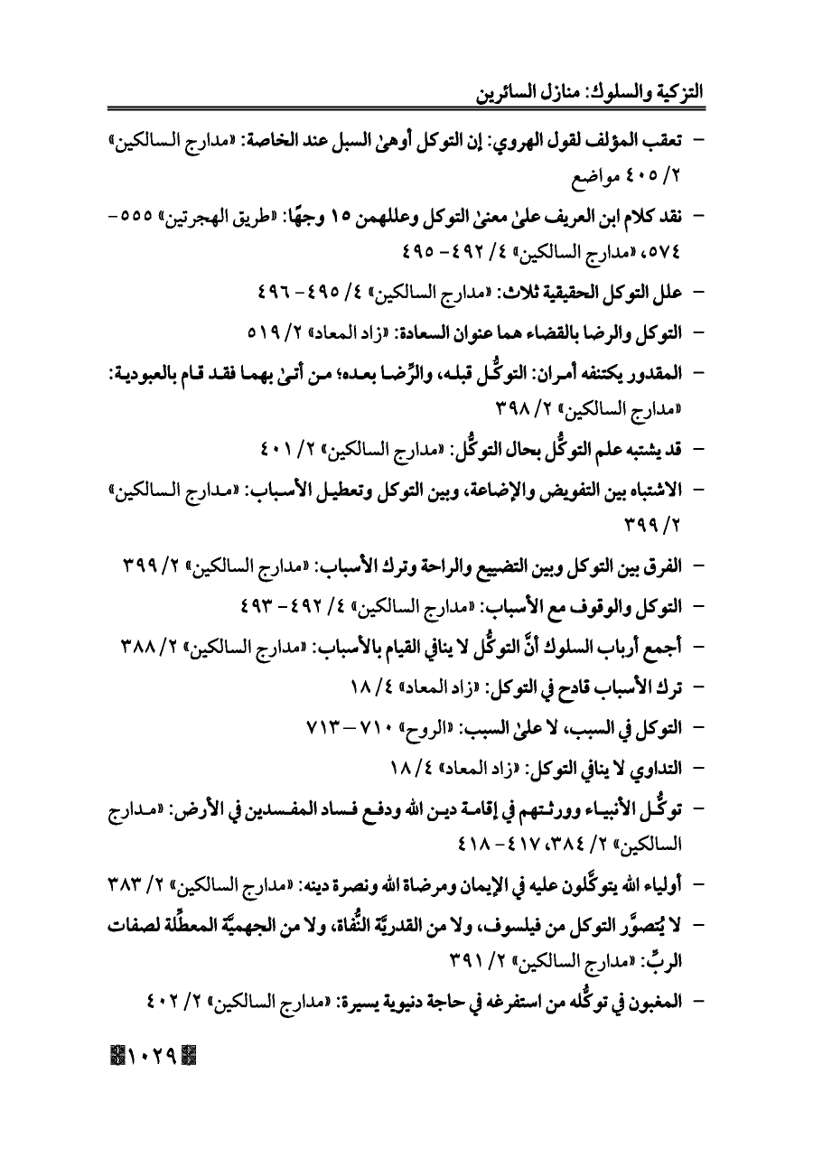 - التوكل والوقوف مع الأسباب: «مدارج السالكين» ٤/ ٤٩٢ - ٤٩٣