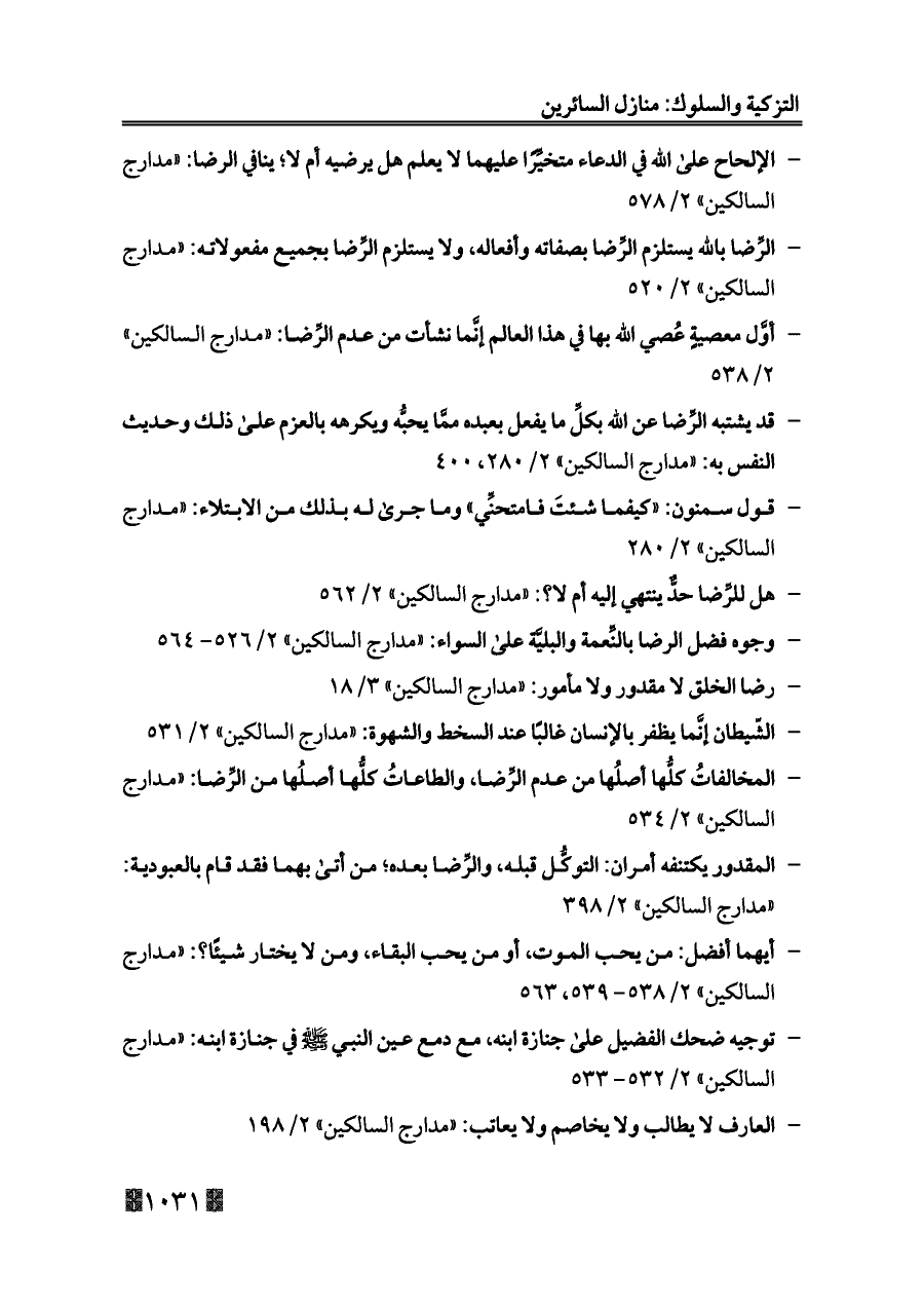 - هل للرِّضا حدٌّ ينتهي إليه أم لا؟: «مدارج السالكين» ٢/ ٥٦٢
