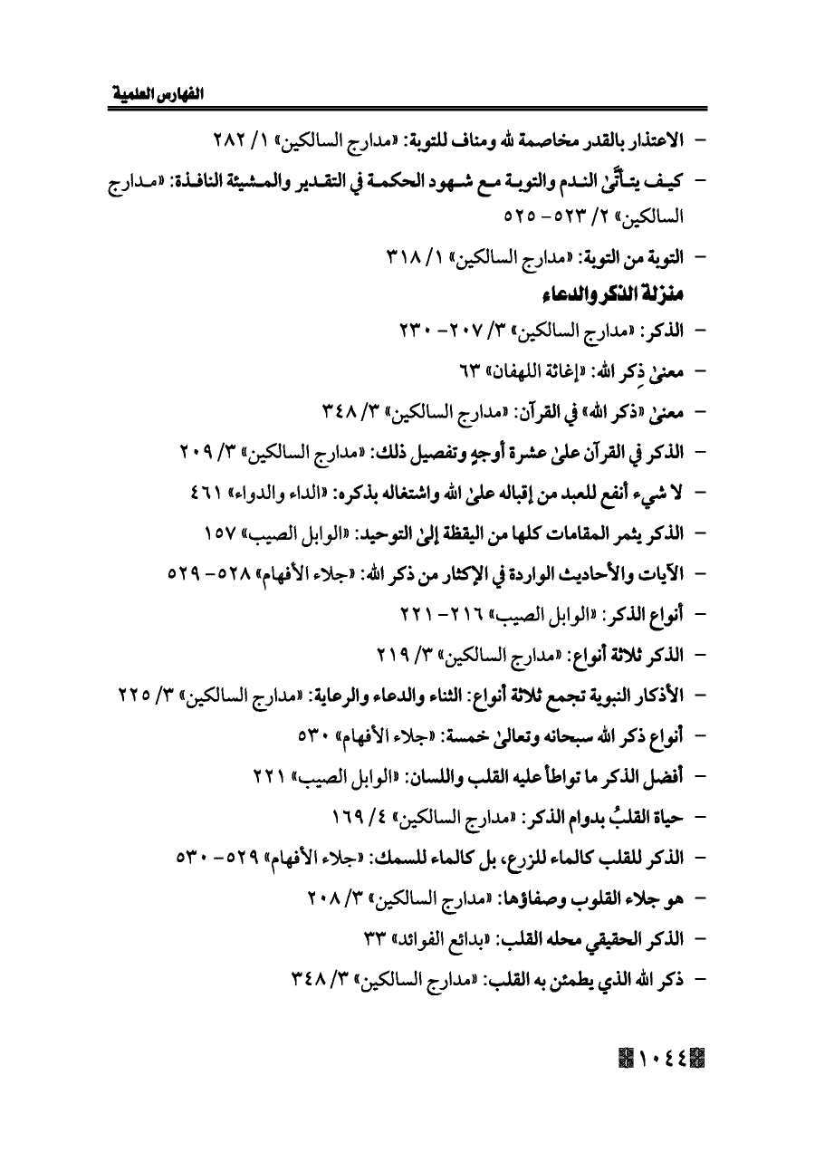 - الذكر: «مدارج السالكين» ٣/ ٢٠٧ - ٢٣٠