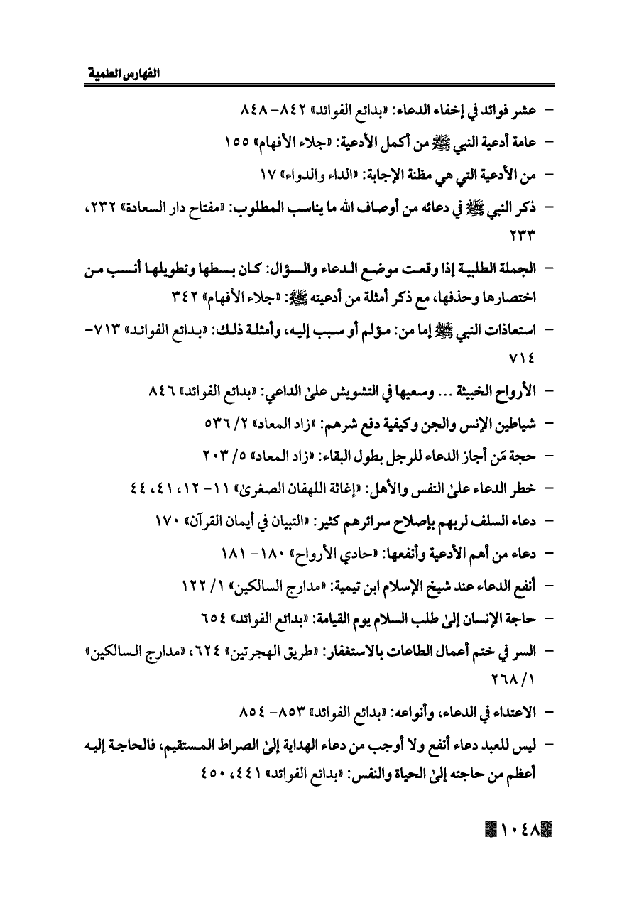 - عامة أدعية النبي - صلى الله عليه وسلم - من أكمل الأدعية: «جلاء الأفهام» ١٥٥