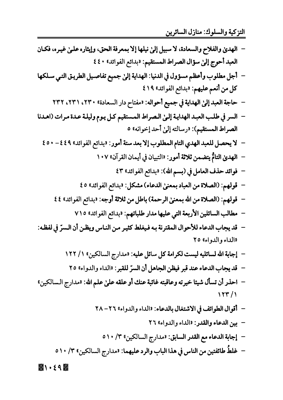 - حاجة العبد إلى الهداية في جميع أحواله: «مفتاح دار السعادة» ٢٣٠، ٢٣١، ٢٣٢
