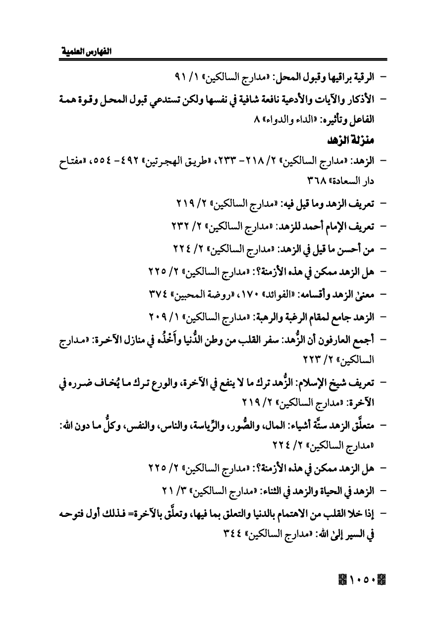 - معنى الزهد وأقسامه: «الفوائد» ١٧٠، «روضة المحبين» ٣٧٤