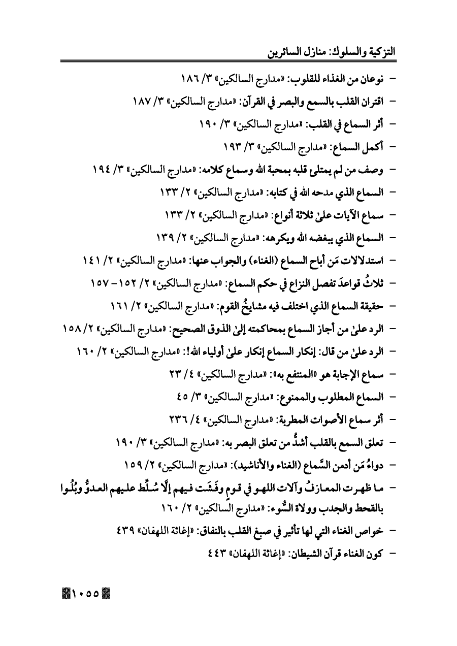 - السماع المطلوب والممنوع: «مدارج السالكين» ٣/ ٤٥