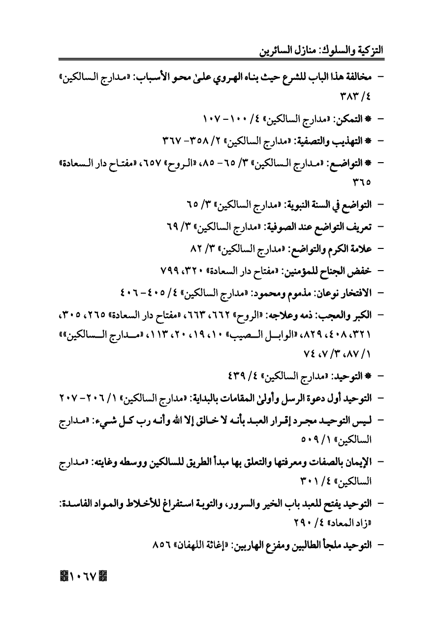 - * التوحيد: «مدارج السالكين» ٤/ ٤٣٩