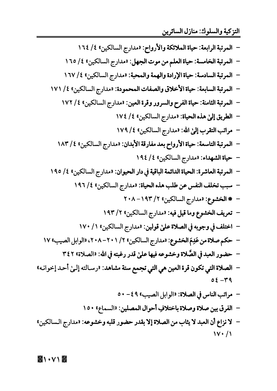 - حكم صلاة من عَدِمَ الخشوع: «مدارج السالكين» ٢/ ٢٠١ - ٢٠٨، «الوابل الصيب» ١٧
