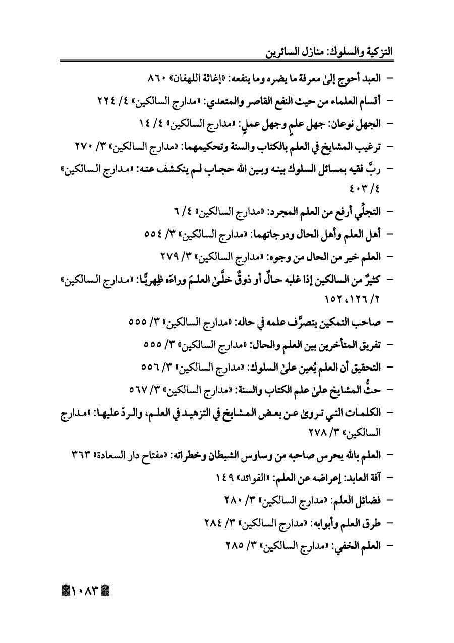 - فضائل العلم: «مدارج السالكين» ٣/ ٢٨٠
