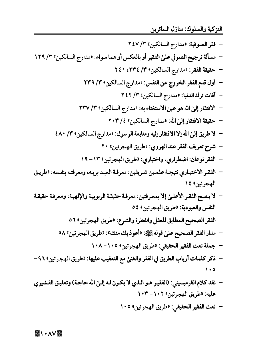 - جملة نعت الفقير الحقيقي: «طريق الهجرتين» ١٠٥ - ١٠٨