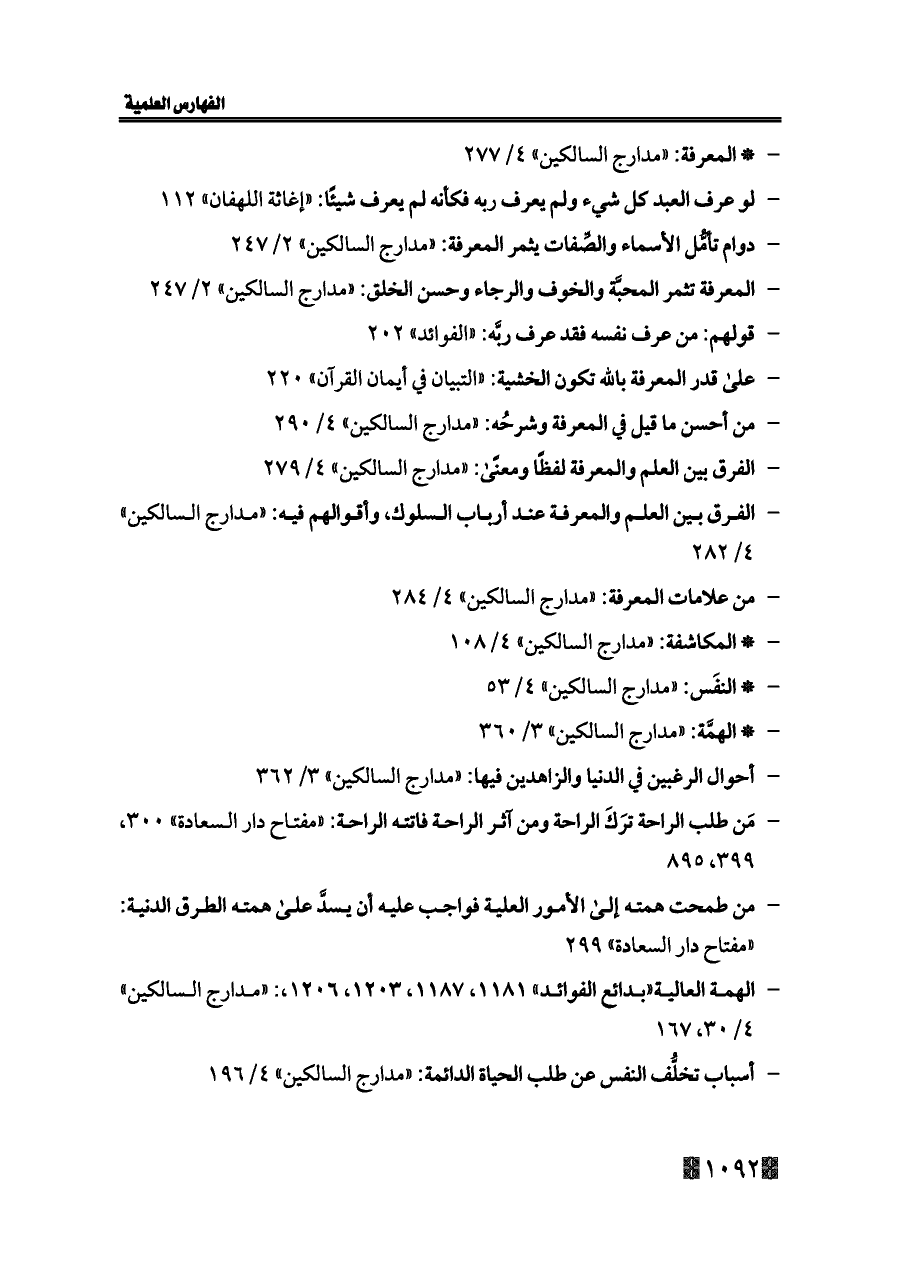 - من أحسن ما قيل في المعرفة وشرحُه: «مدارج السالكين» ٤/ ٢٩٠