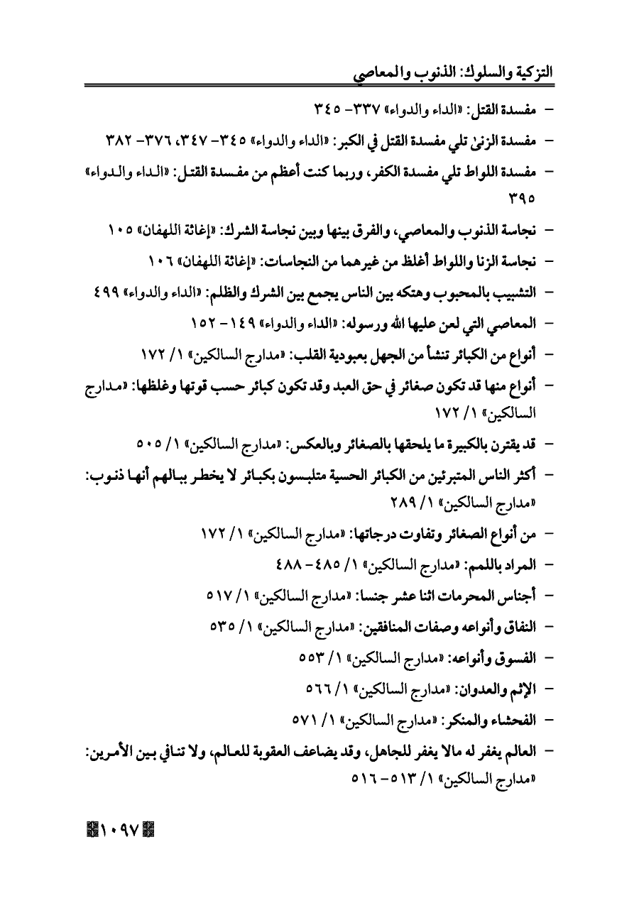 - من أنواع الصغائر وتفاوت درجاتها: «مدارج السالكين» ١/ ١٧٢