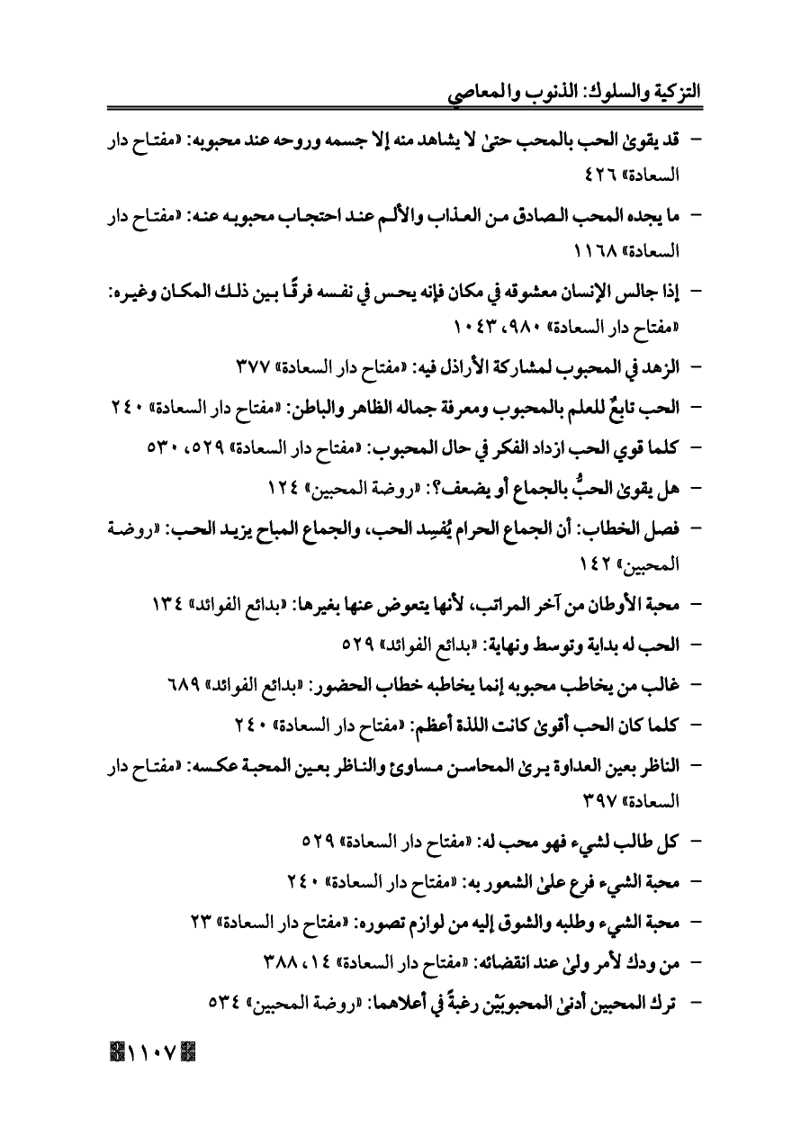 - محبة الشيء فرع على الشعور به: «مفتاح دار السعادة» ٢٤٠