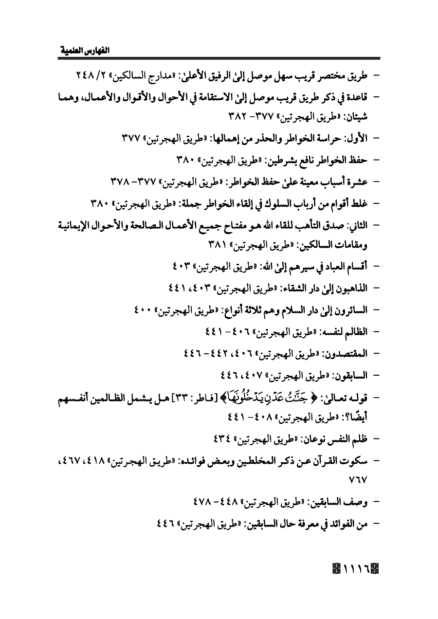 - غلط أقوام من أرباب السلوك في إلقاء الخواطر جملة: «طريق الهجرتين» ٣٨٠