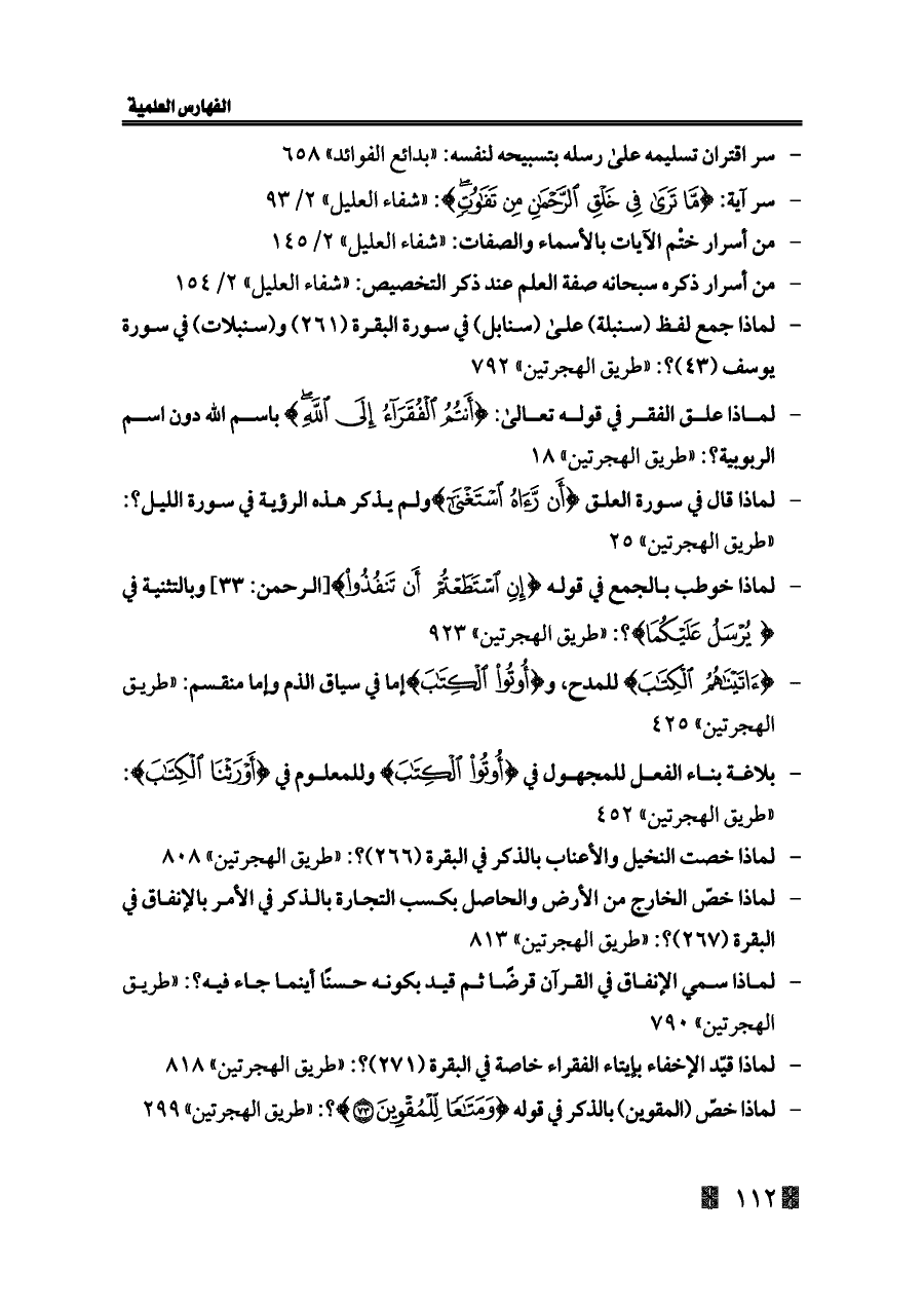 - سر اقتران تسليمه على رسله بتسبيحه لنفسه: «بدائع الفوائد» ٦٥٨