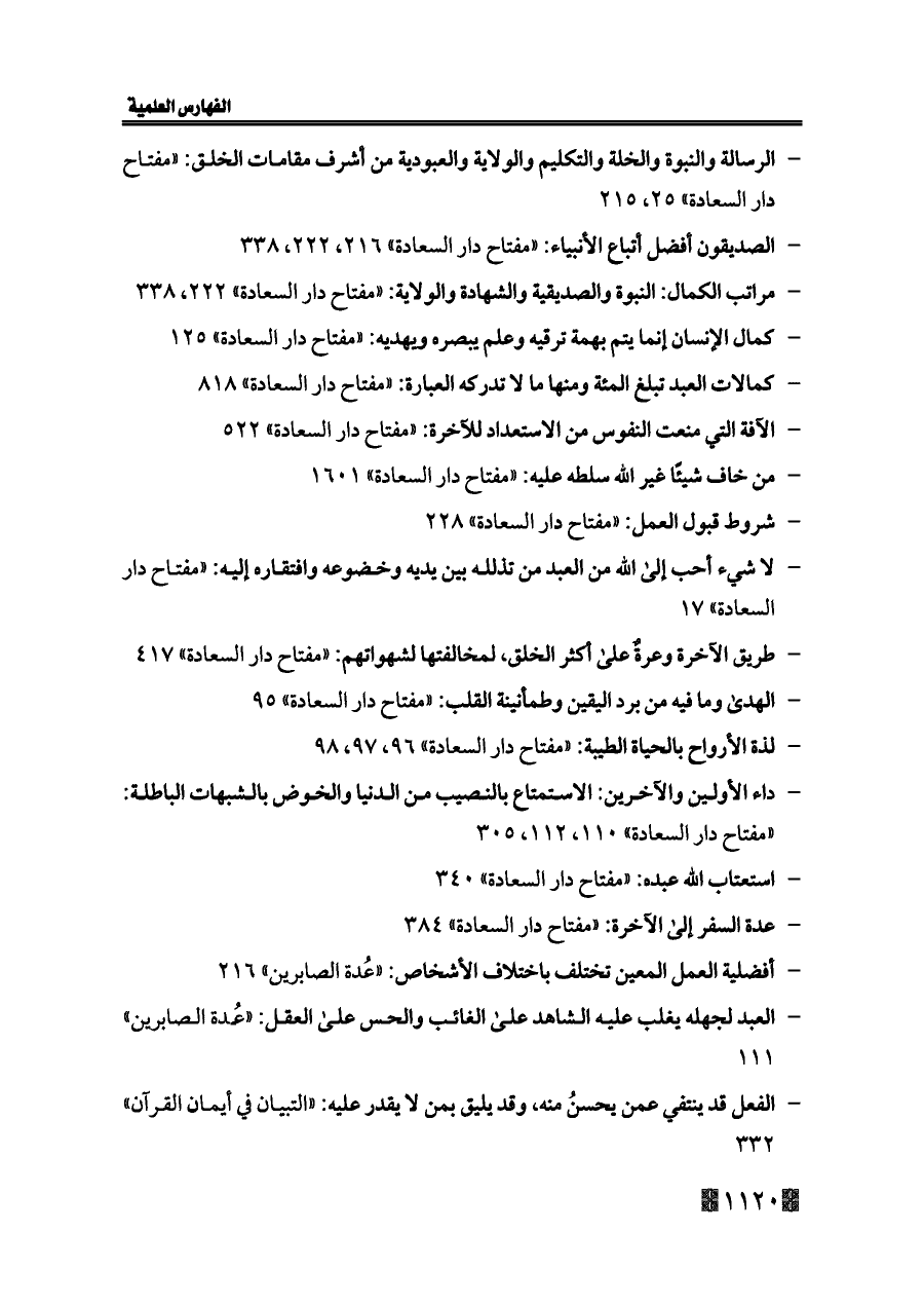 - كمالات العبد تبلغ المئة ومنها ما لا تدركه العبارة: «مفتاح دار السعادة» ٨١٨