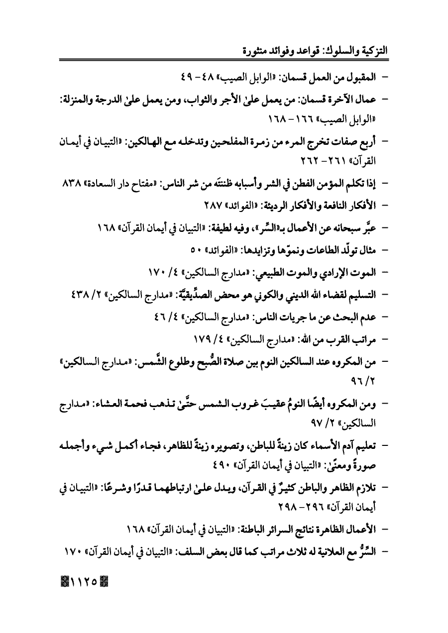 - المقبول من العمل قسمان: «الوابل الصيب» ٤٨ - ٤٩