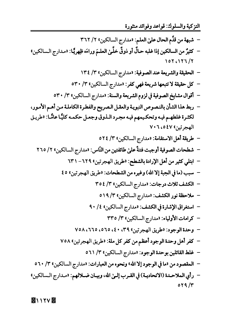 - وحدة الوجود: «طريق الهجرتين» ٣٩، ٤٠، ٥٦٥، ٦٦٥، ٧٥٨