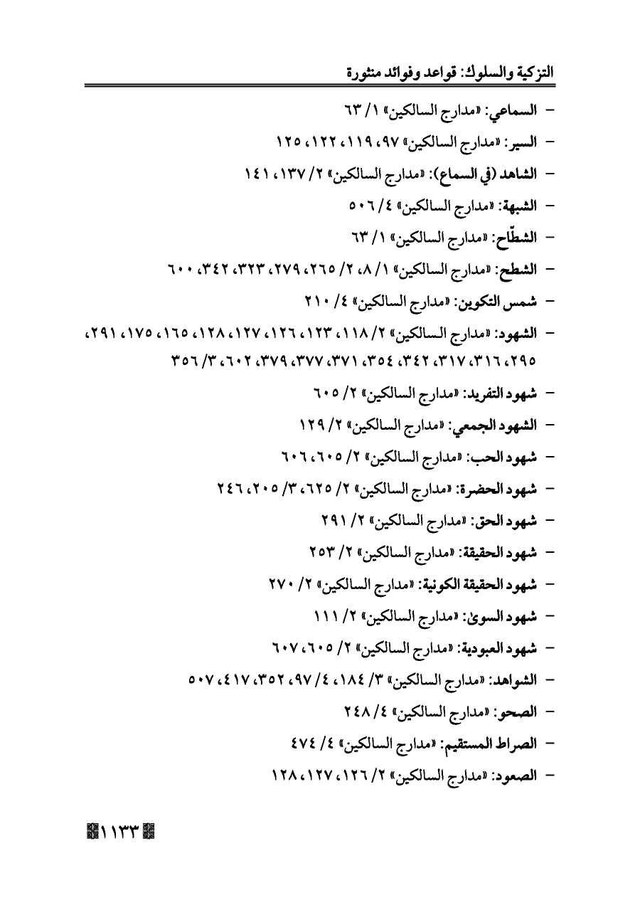 - الشواهد: «مدارج السالكين» ٣/ ١٨٤، ٤/ ٩٧، ٣٥٢، ٤١٧، ٥٠٧
