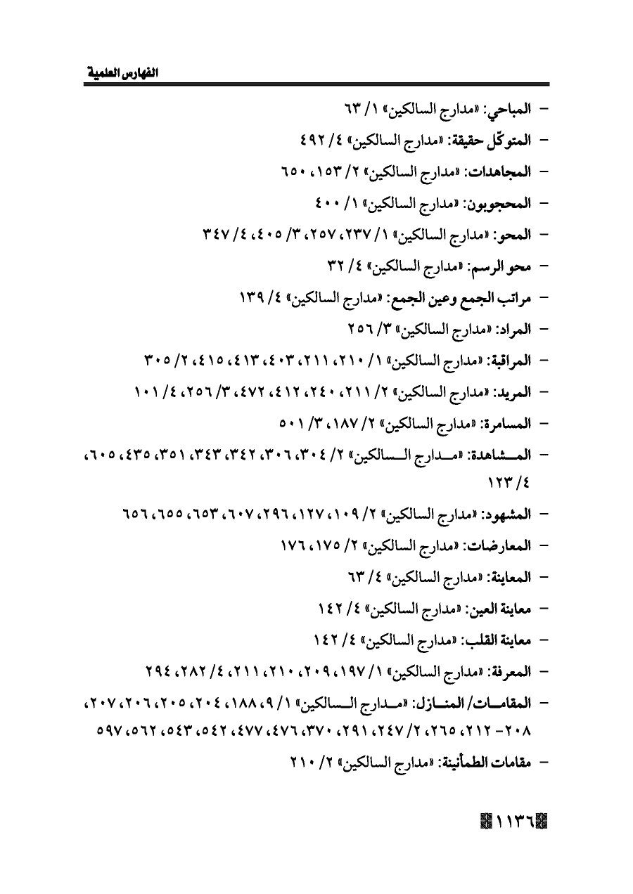 - المريد: «مدارج السالكين» ٢/ ٢١١، ٢٤٠، ٤١٢، ٤٧٢، ٣/ ٢٥٦، ٤/ ١٠١