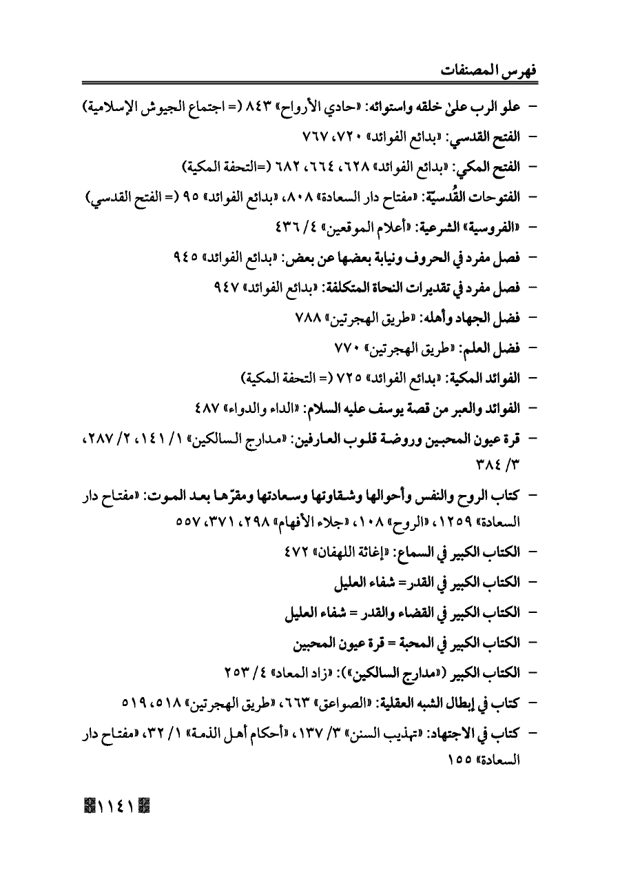 - الكتاب الكبير («مدارج السالكين»): «زاد المعاد» ٤/ ٢٥٣