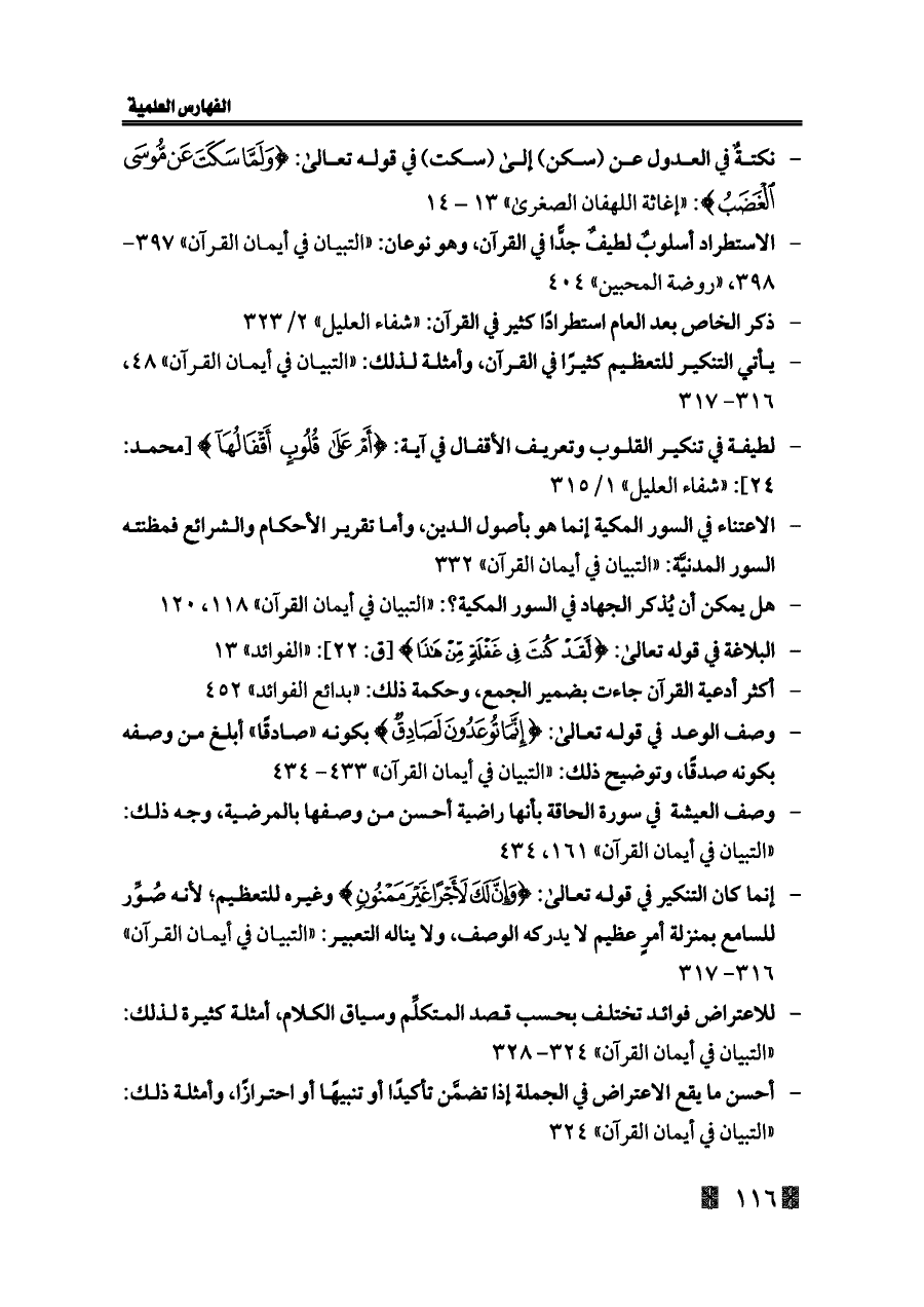 - الاستطراد أسلوبٌ لطيفٌ جدًّا في القرآن، وهو نوعان: «التبيان في أيمان القرآن» ٣٩٧ - ٣٩٨، «روضة المحبين» ٤٠٤