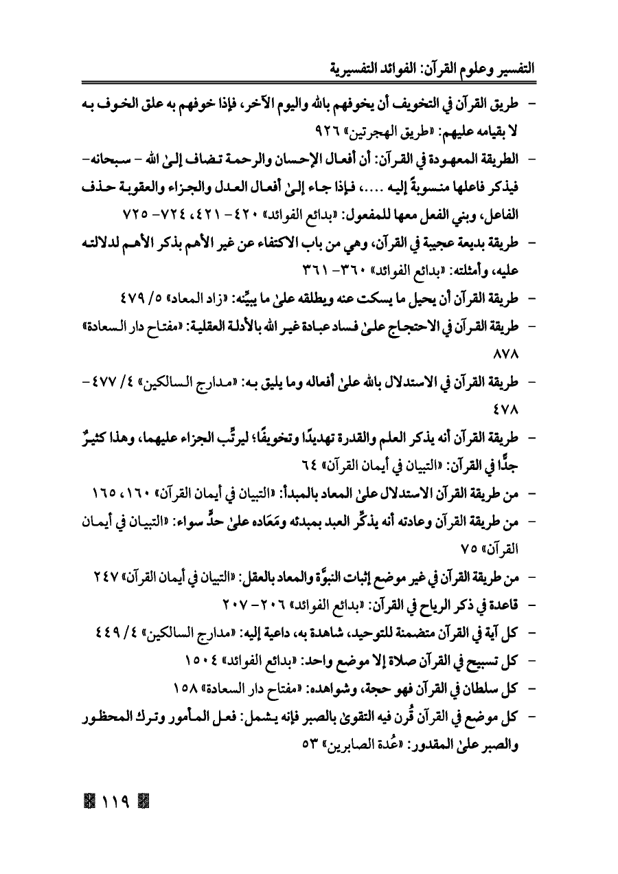 - طريقة القرآن في الاستدلال بالله على أفعاله وما يليق به: «مدارج السالكين» ٤/ ٤٧٧ - ٤٧٨