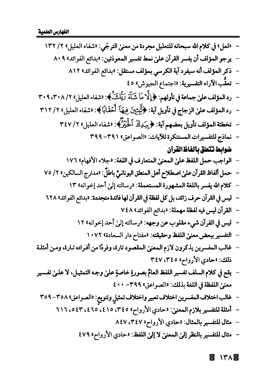 - القرآن ليس فيه لفظة مهملة: «بدائع الفوائد» ٧٤٨