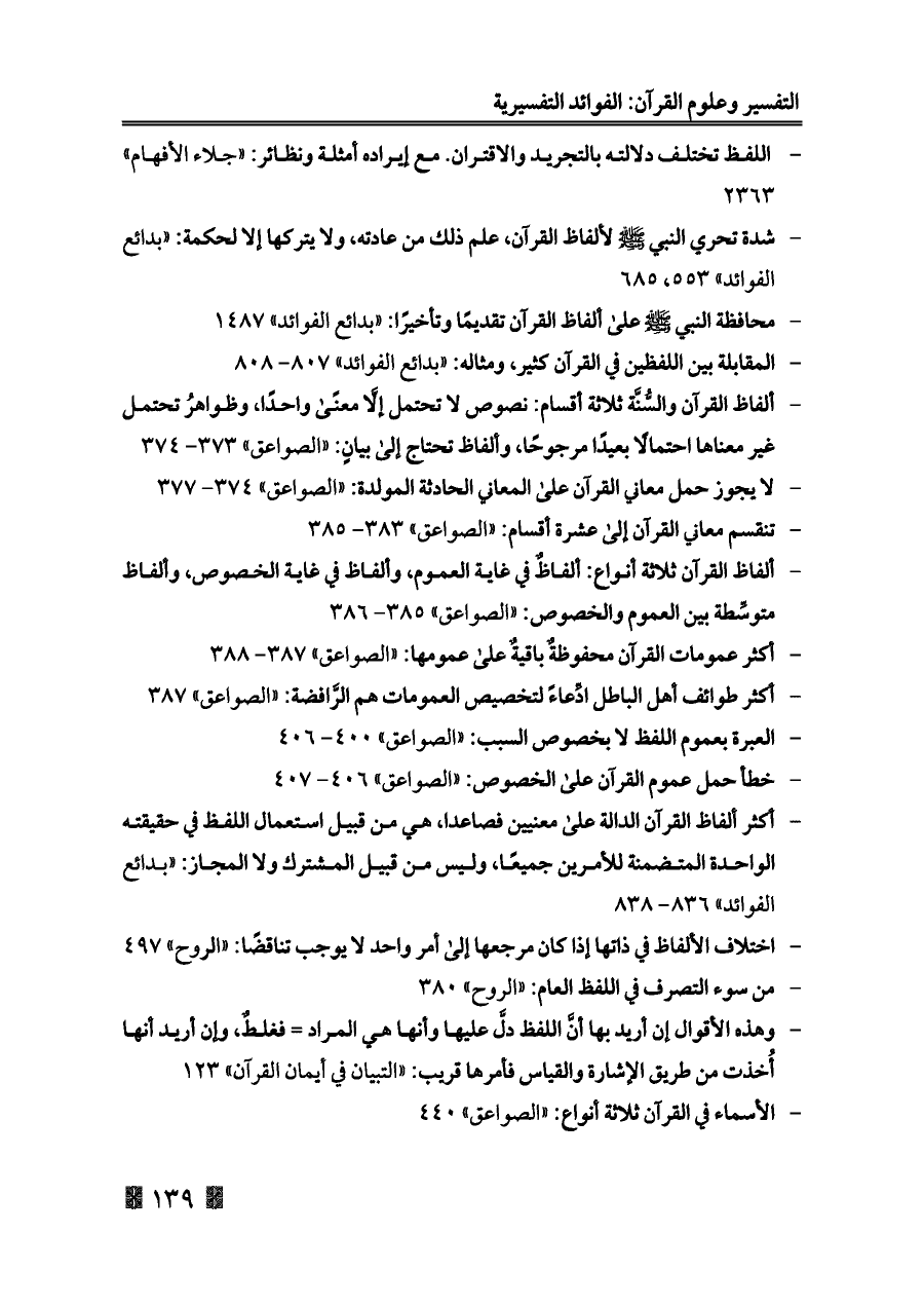 - الأسماء في القرآن ثلاثة أنواع: «الصواعق» ٤٤٠